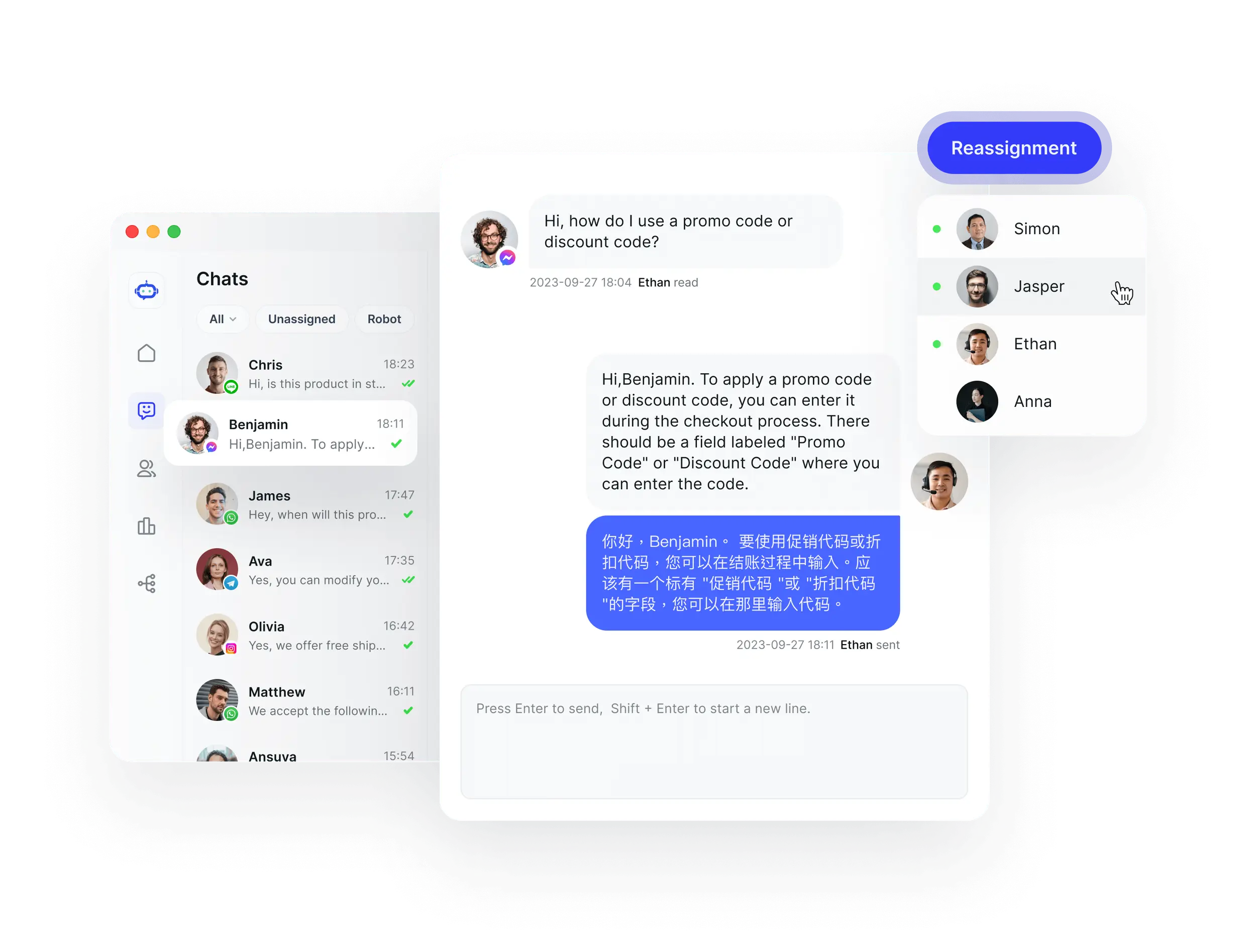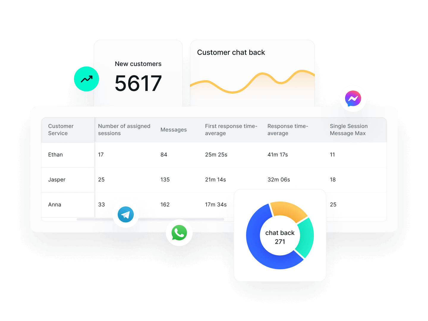 Consolidate all messaging channels into one backend and collaborate efficiently across teams with automated chat distribution and internal session distribution.